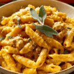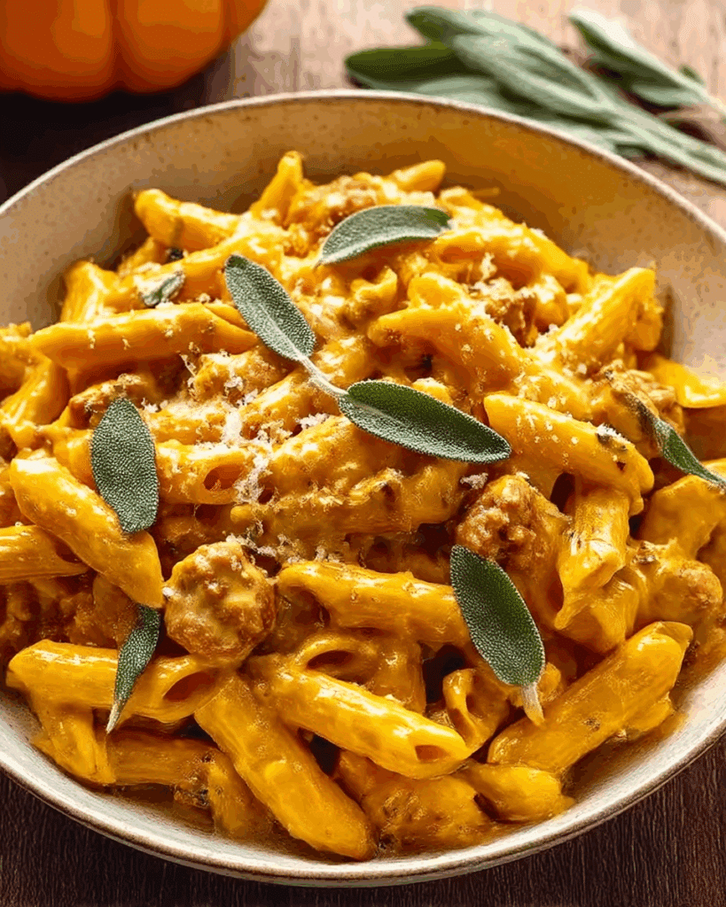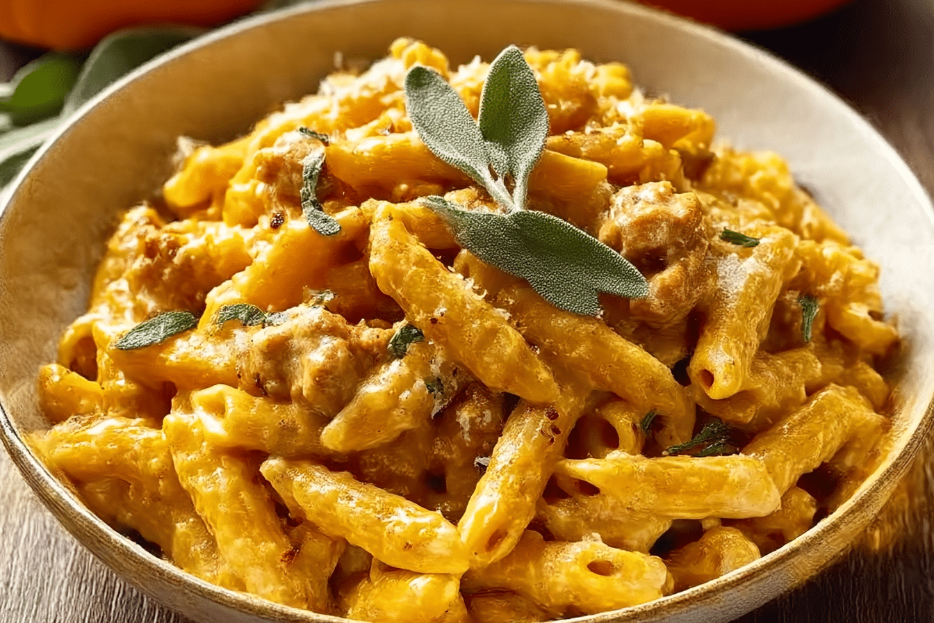 A cozy yet light pasta dish with savory sausage, creamy pumpkin sauce, and aromatic herbs — perfect for weeknights or fall gatherings.
