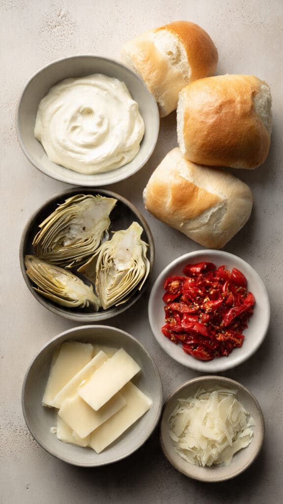 - Provolone Cheese: 2 slices. Melts perfectly and complements the artichokes.