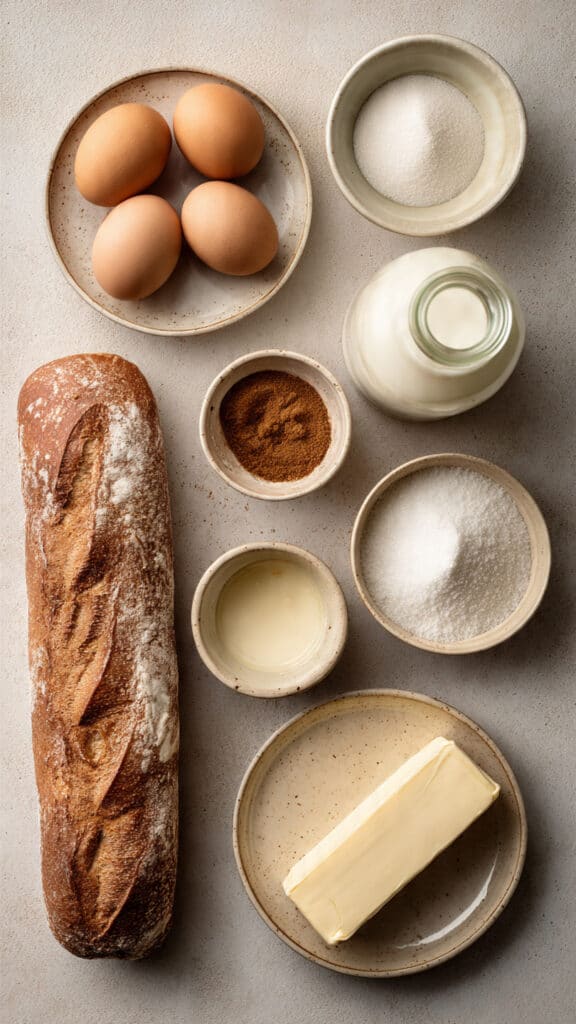French Bread: Its sturdy texture allows it to soak up custard without collapsing.