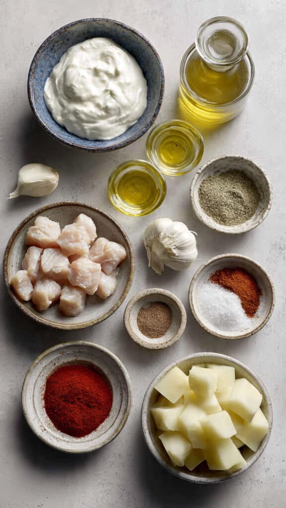 This dish brings together soft, juicy chicken and crispy-edged potatoes, all wrapped in a creamy, zesty sauce that clings to every bite. The yogurt keeps things moist, while the spices create a bold, layered flavor that feels both familiar and exciting.