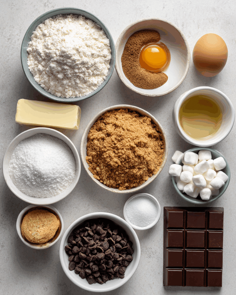 Graham Crackers – The key to that classic s’mores flavor! Crushed into the dough, they give texture and that nostalgic taste. You can crush by hand or pulse in a food processor—just don’t turn them into dust.