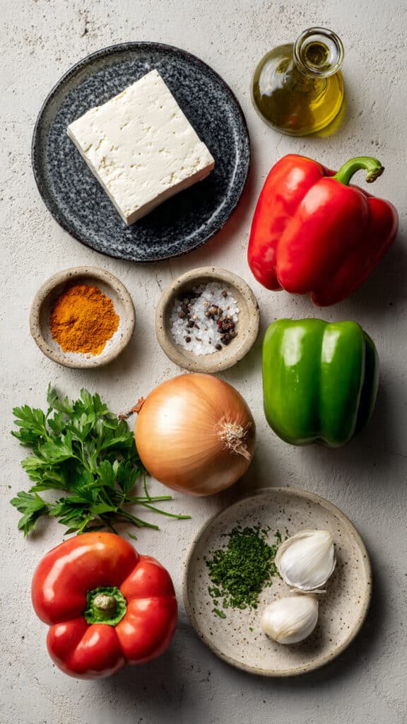 A soft and fluffy tofu scramble made with golden seasoned tofu, sautéed bell peppers, onion, and garlic. This quick plant based breakfast is savory, satisfying, and ready in just 15 minutes.