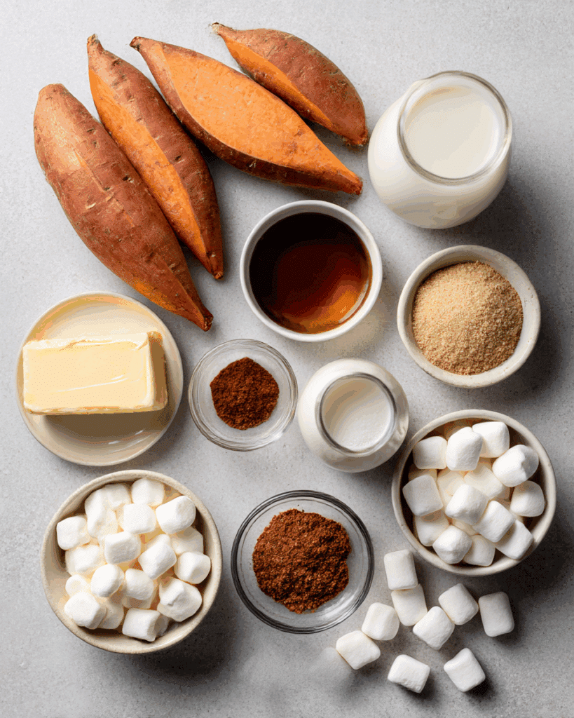- Mini Marshmallows: 2 cups – The classic golden topping that seals the deal.