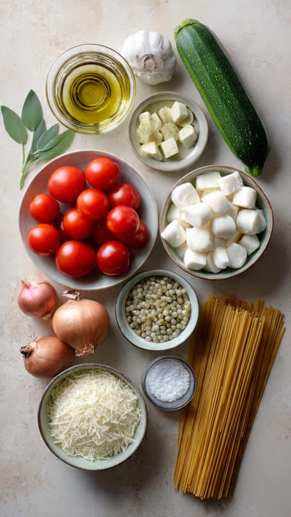 This dish is all about balance. The zucchini softens into a buttery base, the tomatoes brighten with sweetness and acidity, and the cheese melts into little pockets of creamy goodness. Parmigiano brings sharpness, while the sage gives an herbal backbone. Each bite has a bit of chew, melt, and silk.