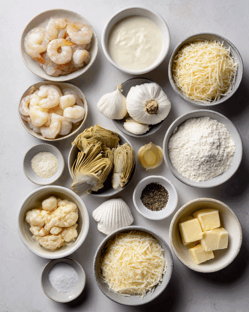 - Gently sauté shrimp and scallops in a separate pan until just opaque, about 2–3 minutes. Combine them with artichoke hearts, then fold into the sauce. Pour the mixture into your prepared casserole dish and smooth the top.