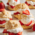 These Strawberry Shortcake Biscuits are the perfect blend of tender, buttery biscuits, sweet macerated strawberries, and airy whipped cream. A nostalgic and simple dessert that celebrates the best of summer flavors.