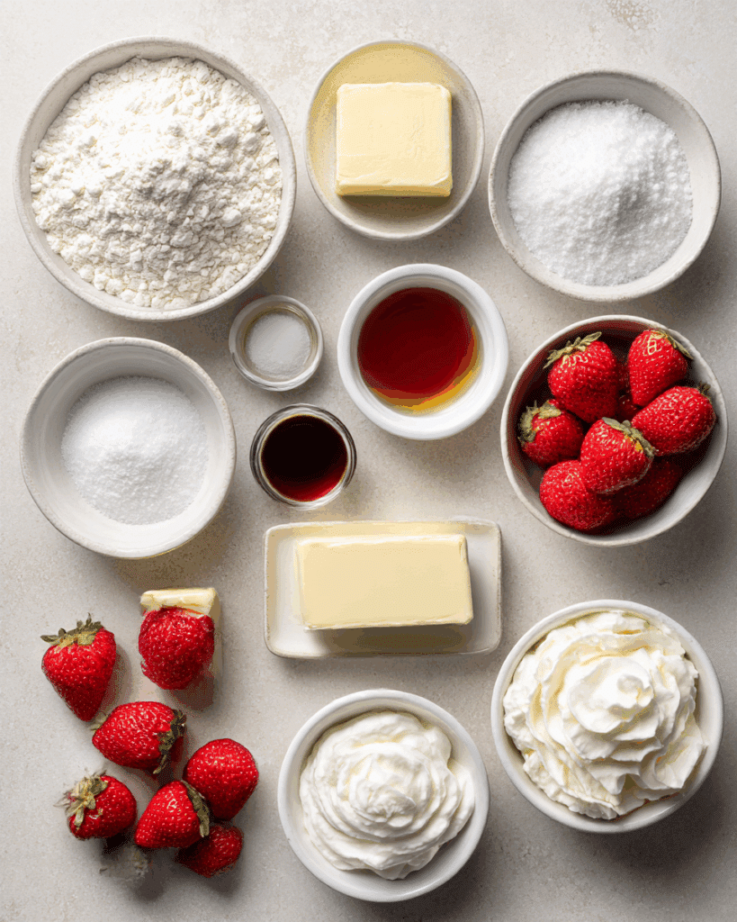- Powdered Sugar: 2 tablespoons – For macerating strawberries or dusting on top.