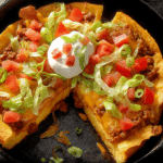Taco Skillet Pizza with Cornbread Crust is more than just a mash-up — it’s a fun, creative, and crowd-pleasing way to fuse two favorites into one unforgettable dish. It brings together crisp edges, soft crumb, spicy meat, melty cheese, and vibrant toppings in every slice. Whether for dinner, game night, or a casual weekend treat, this dish is a winner. Let me know if you’d like the Tasty card or Pinterest assets next!