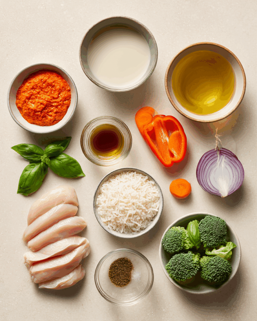 Thai Red Curry Chicken & Vegetables is a creamy, spicy, and comforting dish loaded with tender chicken, colorful vegetables, and a rich coconut-based sauce. It’s a quick, flavorful dinner that brings authentic Thai flavor to your kitchen.