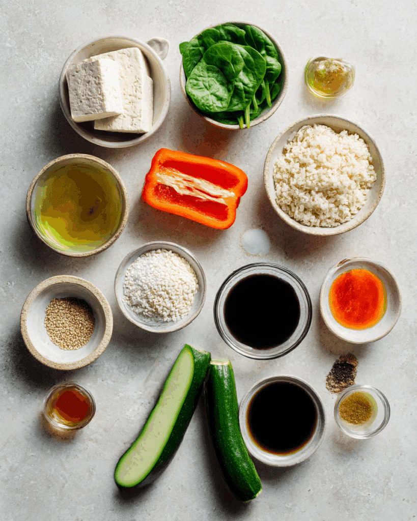 - Extra-Firm Tofu: 1 block (14 oz), pressed and cubed – Protein-rich base with a lovely texture when roasted.