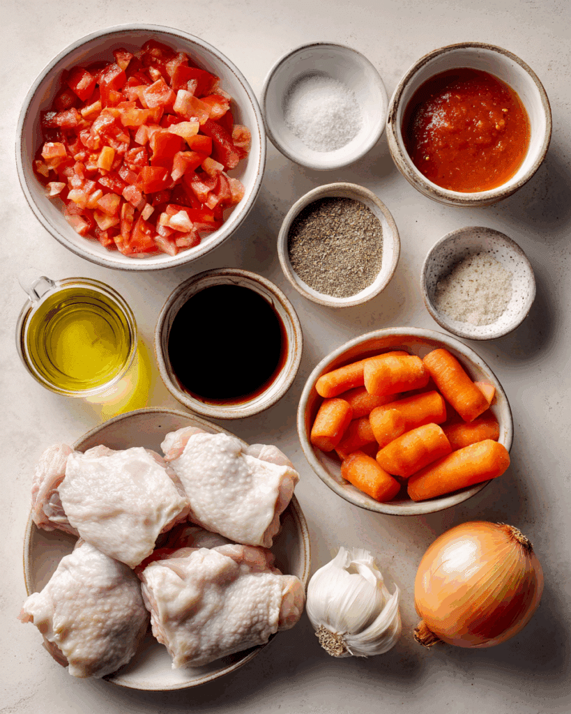 Chicken Thighs: The hero of this dish — they’re more flavorful and forgiving than chicken breasts and hold up well to long cooking.