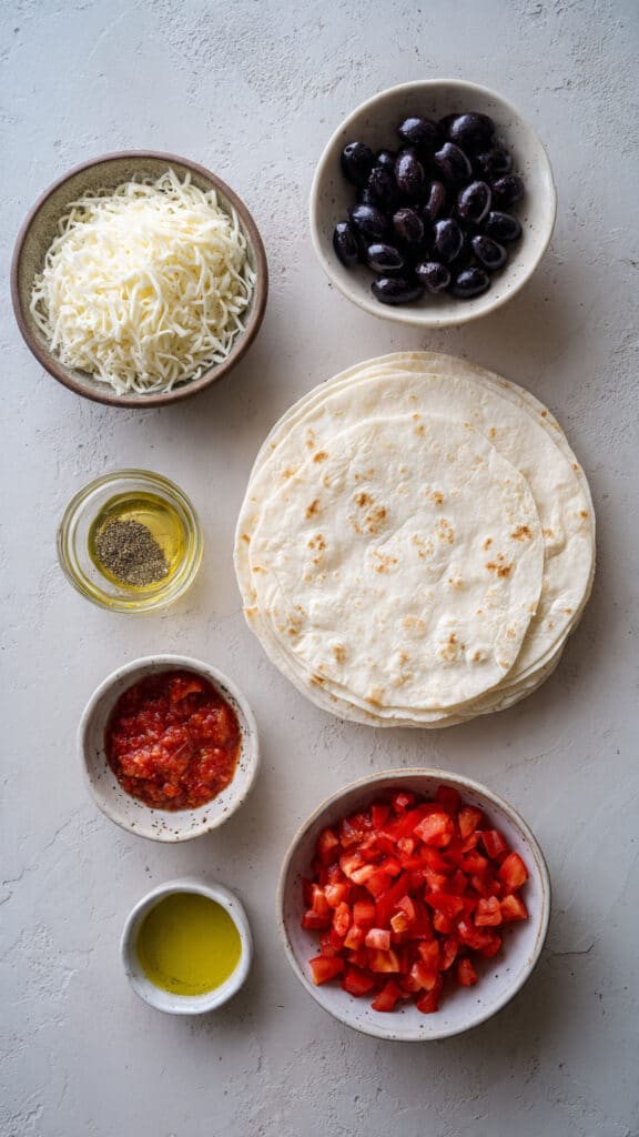 There’s something special about how simple ingredients turn into something crave-worthy here. The tortilla crisps up beautifully, almost like a thin-crust pizza, while the cheese melts right into every corner. Add olives, tomatoes, and herbs, and suddenly you’ve got a pizza that feels playful, fast, and totally comforting. This one’s a total game-changer for quick meals.