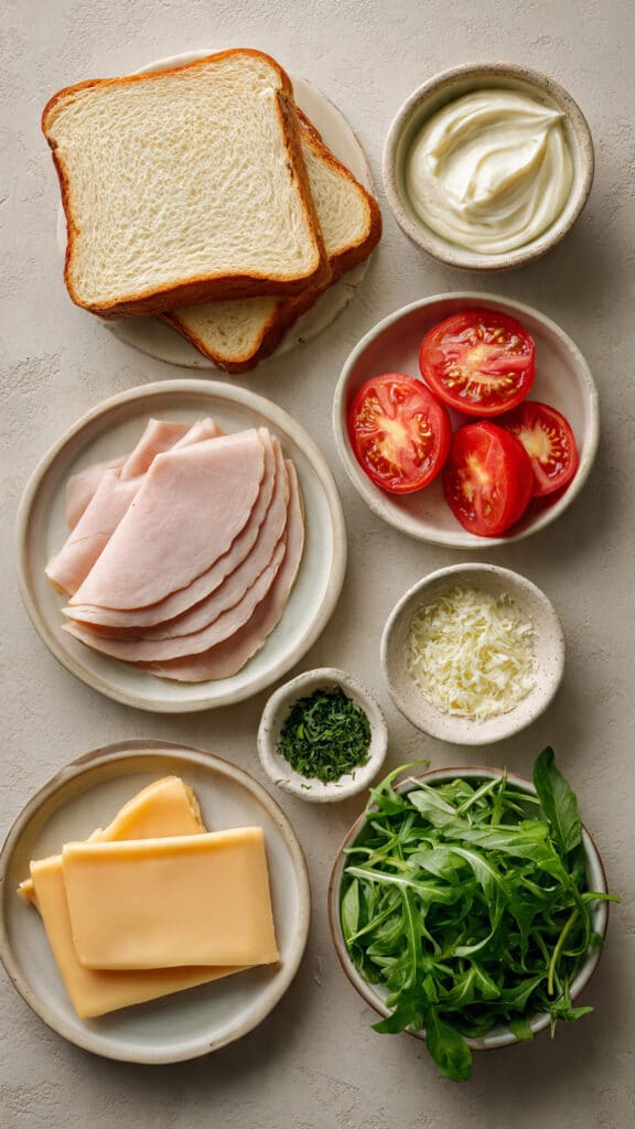 - Cook to Perfection: Layer turkey, cheddar cheese, bacon, tomato slices, and arugula.
