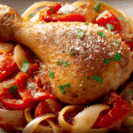 Weeknights call for comfort—something soul-warming, hearty, and full of flavor, but without hours spent in the kitchen. That’s where Weekday Chicken Cacciatore comes in. Tender chicken thighs simmered in a rustic tomato and bell pepper sauce, scented with garlic, herbs, and just the right amount of spice. The aroma alone is enough to melt away the stress of the day. It’s a dish that feels slow-cooked, yet comes together quickly enough for a busy Tuesday night.